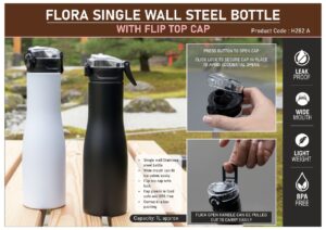 Be the first to review “Flora 1L Single Wall Stainless Steel Water Bottle with Flip Top Cap & Handle”